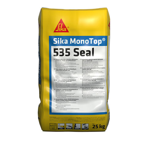 Sika MonoTop®-535 Seal ist eine einkomponentige, starre, mineralische Beschichtung auf Basis von Zement, ausgewählten feinen Quarzsand und speziellen Additiven, der leicht manuell oder maschinell in Schichtdicken von 2,0 bis 3,5 mm, mehrlagig bis max. 5 mm aufgebracht werden kann.