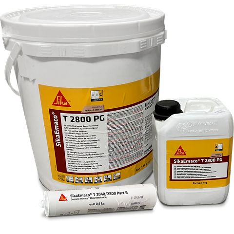 SikaEmaco® T 2800 PG ist ein polymergebundener, schnell erhärtender 3-komponentiger Reparaturmörtel, der auch bei sehr niedrigen Temperaturen in Schichtdicken von 8 - 100 mm verarbeitet werden kann. Zuschlagstoff und Bindemittel basierend auf der einzigartigen APS-Technologie (Advanced Polymer System). SikaEmaco® T 2800 PG besteht aus einem Hybridpolymer, zwei verschiedene Aktivatoren für unterschiedliche Anwendungstemperaturbereich und einem reaktiven Füllstoff.