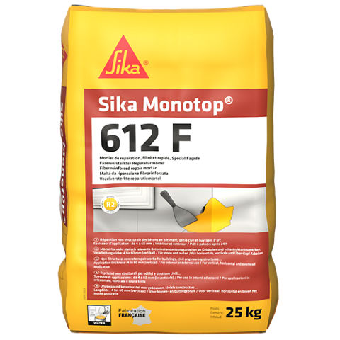 1-komponentiger, kunststoffmodifizierter Mörtel, faserarmiert mit speziellen Zuschlagstoffen und Zusatzmitteln. Durch Zugabe von Wasser lässt sich ein graufarbiger Reparaturmörtel mit kurzen Überarbeitungszeiten herstellen. Sika MonoTop®-612 F ist chromatarm nach TRGS 613.