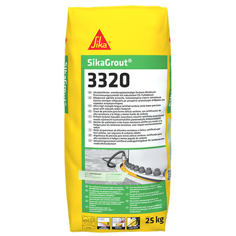 SikaGrout®-3320 ist ein einkomponentiger zementgebundener Vergussmörtel, der speziell für Windtürme aus Stahl und Betonteilen im Onshore-Bereich entwickelt wurde. Er enthält rückgewonnene Materialien, die zu einer Reduktion der CO2 - Emission beitragen.