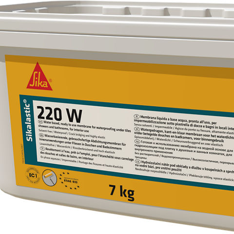 Sikalastic®-220 W ist eine 1-komponentige, flüssig aufzubringende Polymerdispersion unter Beschichtungen in Sanitär- und Nassräumen. Teil vom Abdichtungssystem für Nassräume gemäß EAD 030352-00-0503 Flüssig aufzutragende, wasserdichte Abdichtungs-Sets für Böden und/oder Wände in Nassräumen.