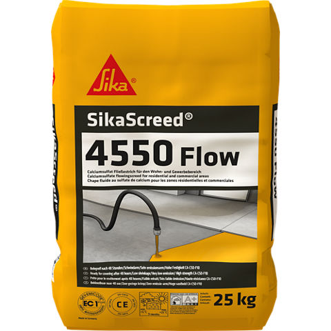 SikaScreed®‐4550 Flow ist ein sehr emissionsarmer, Fließestrich für den Wohn- und Gewerbebereich. SikaScreed®‐4550 Flow ist bereits nach 48 Stunden direkt für die Aufnahme von Bodenbelägen geeignet. Zusätzliches Grundieren und Spachteln entfallen. SikaScreed®‐4550 Flow zeichnet sich durch ein geringes Schwindmaß aus und ist sowohl manuell als auch maschinell verarbeitbar.