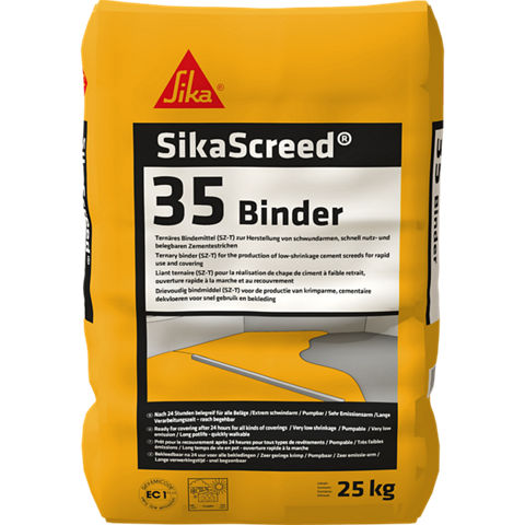 SikaScreed®-35 Binder ist ein ternäres Bindemittel zur Erstellung von schwindarmen, schnell begehbaren und belegreifen Zementestrichen in Wohn- und Gewerbebauten. Je nach Mischungsverhältnis sind Estriche mit einer Festigkeitsklasse bis zu CT-C40-F6 gem. EN 13813 möglich. SikaScreed®-35 Binder ermöglicht die Erstellung von fugenlosen Flächen bis 200 m².