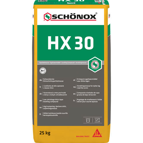 Dank der Hybrid-Technologie überzeugt SCHÖNOX HX 30 durch hervorragende Verarbeitungseigenschaften und eine frühe Belegreife aus. Besonders geeignet zum Ausgleichen von dünnschichtigen Heizsystemen.